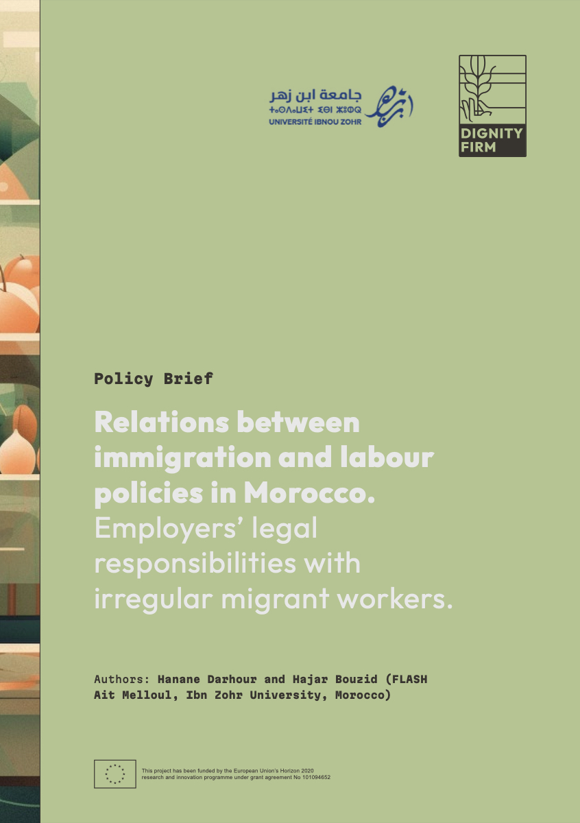 How to cite: Darhour, H., & Bouzid, H. (2025). Policy Brief: Relations between immigration and labour policies in Morocco. Employers’ legal responsibilities with irregular migrant workers. DignityFIRM https://doi.org/10.5281/zenodo.17397538