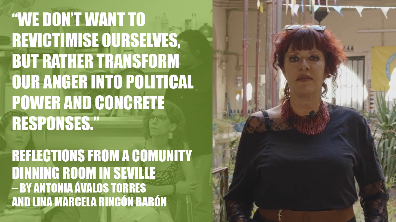 20 Jan “We don’t want to revictimise ourselves, but rather transform our anger into political power and concrete responses.” – Reflections from a community dinning room in Seville by Antonia Ávalos Torres and Lina Marcela Rincón Barón